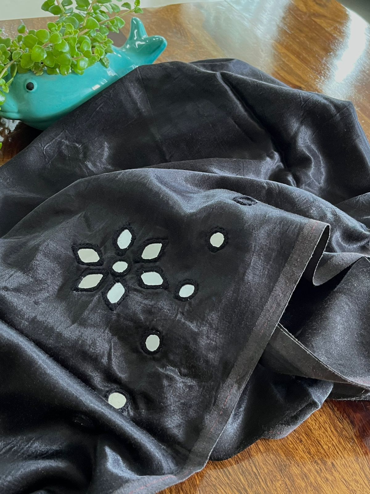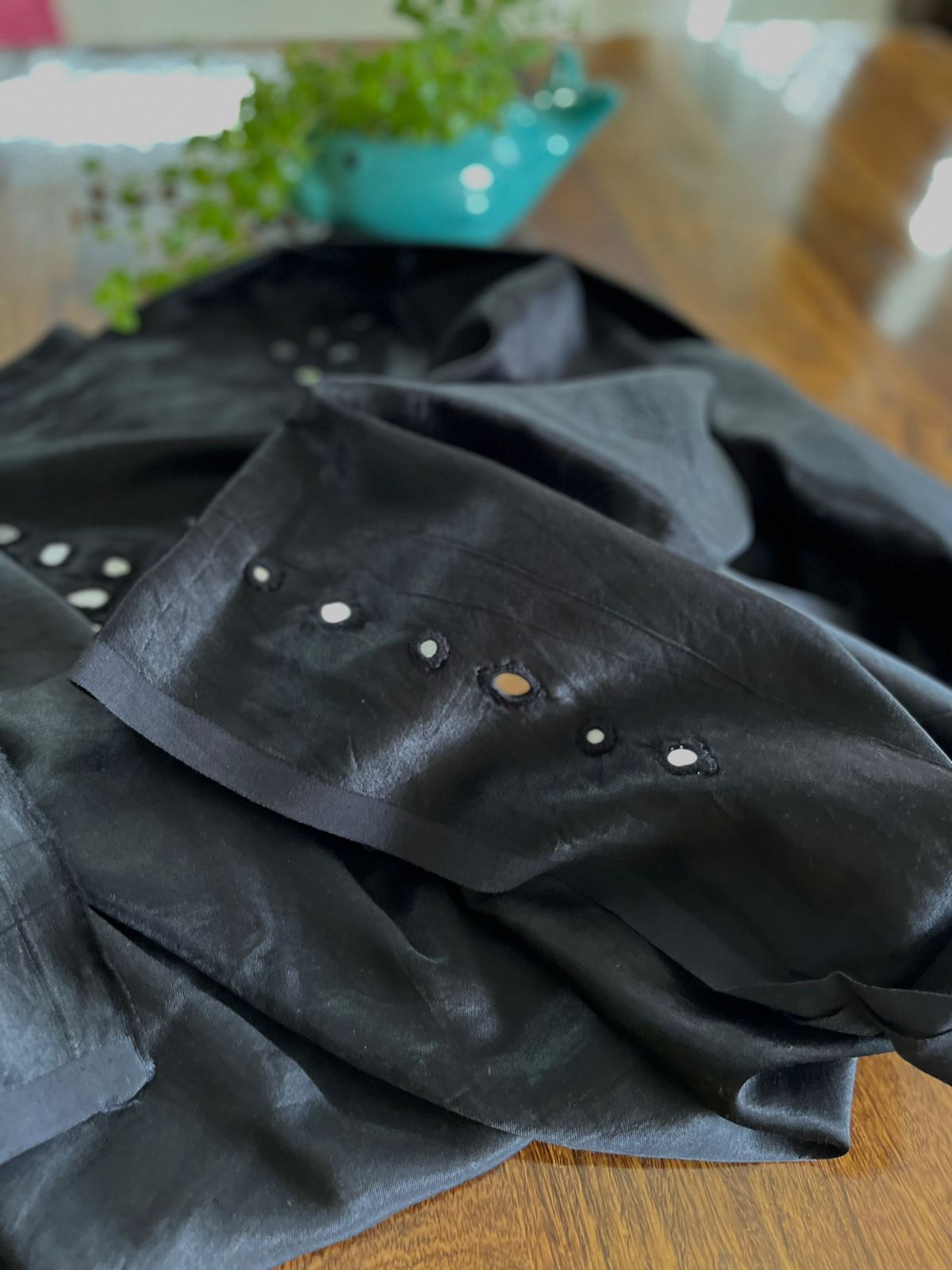 • Mirror work embroidery Kurta from Kutch on Mashru Silk- Jet Black