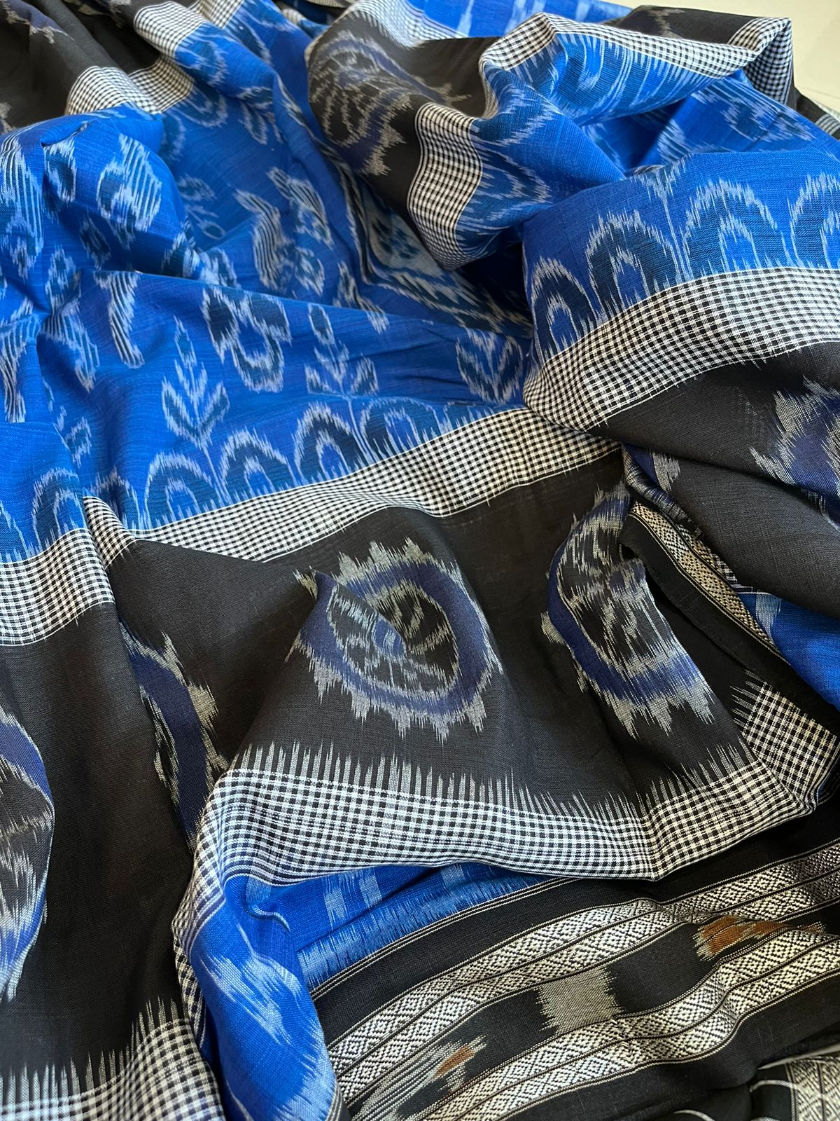 Very comfortable Pure cotton Sambhalpuri saree in lovely shades with contrasting palla. The saree is intricately woven with geometric motifs allover. The beautiful colour combinations are sure to steal your heart away. The saree does not come with blouse